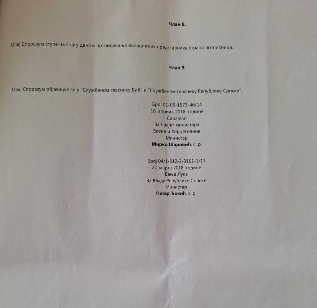 Он је објавио споразум који је у име Владе Републике Српске потписао министар енергетике и рударства Петар Ђокић.